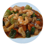 Salteado de Verduras con Langostinos y Salsa de Ostras
