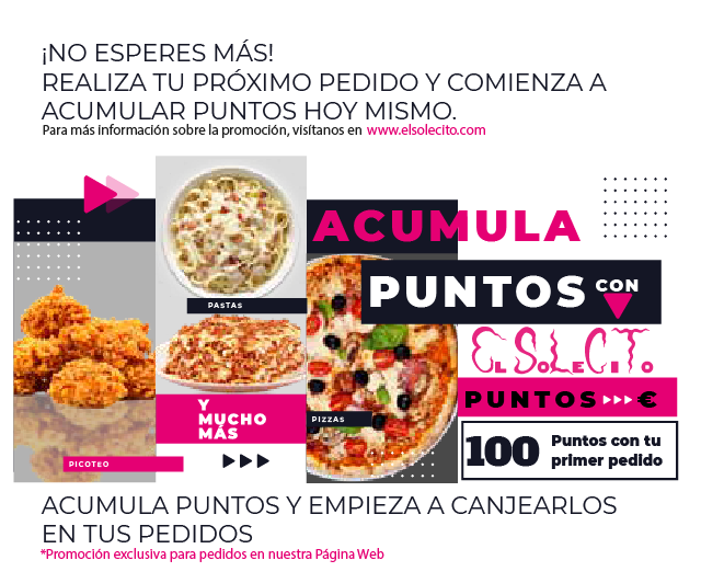 Bienvenido a El Solecito. Queremos que tu experiencia de nuestra comida sea aún mejor y por eso hemos creado nuestro sistema de puntos.